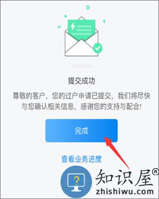 6、提交成功就表示我们的过户申请已经提交,之后会联系我们确认相关信息,可以点击“查看业务进度”查看。
