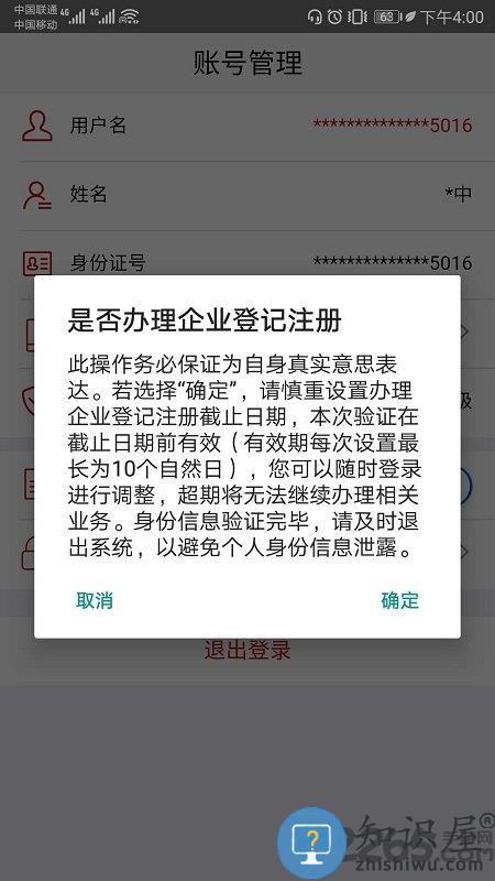 第六步。提示【是否办理企业登记注册】,此操作务必保证为操作人自身真实意思表达,点击【确定】。