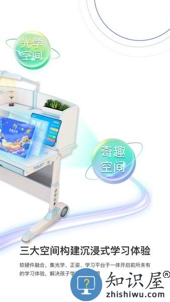 提供软、硬件融合,集光学、正姿、学习双摄直播平台于一体的家庭智慧学习空间,激发孩子对知识的探索和好奇、提升孩子学习兴趣,打造以学习为中心的奇趣世界生态圈,让孩子爱学、会学、能学。