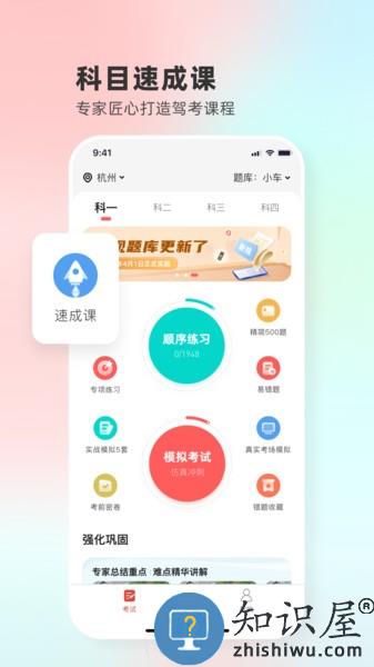 2、全车型的考试题库都有,覆盖了非常完整的学车流程,十分的好用;