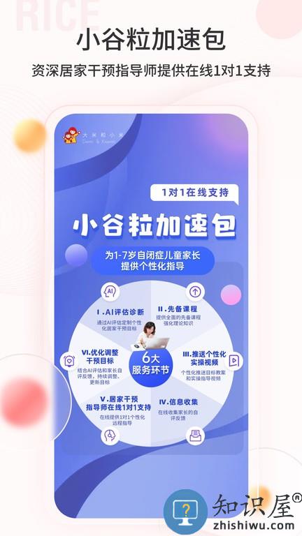 「在线指导」邹小兵、袁巧玲、华又佳、曾松添等国内外一流专家,结合AI,为每个1-7岁的谱系娃家长量身打造个性化、易操作的居家干预方案,并有资深康复师1对1提供在线指导。
