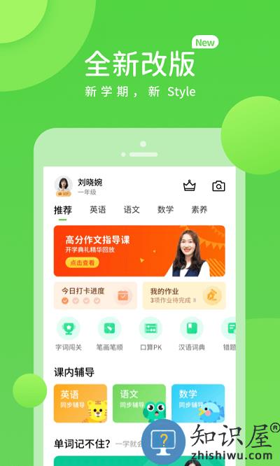 作业辅导、汉语词典、字词闯关、笔画笔顺、句子仿写、作文宝典、课内同步学、老师作业、课文跟读、名家朗读、汉字听写