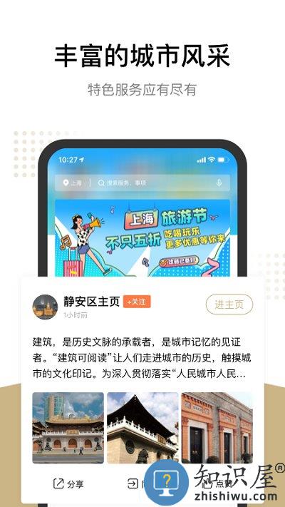 1、“发现”频道全新升级:关注/上新栏目,为你推荐城市风采;我关注的旗舰店,“新动态”“新服务”了如指掌;“同城”直达政务地图,轻松预约身边办事大厅;