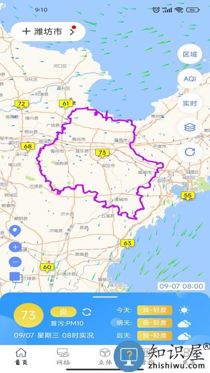 对区域空气质量进行多日预报的查看,以及包含相关气象预报信息的查看。