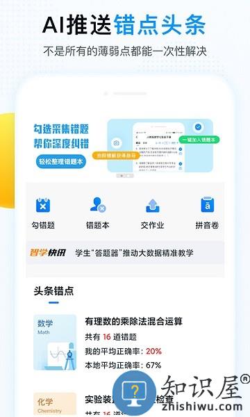 帮助学校建设智能题库和智能作业编写系统,在不改变老师批改习惯下,学生在校用答题器、在家用手机提交选择题答案或勾选错题,师生依据学情报告精准教与学,智能管理错题,老师一键发布个性化、分层作业,学生重做错题,加练相似题,靶向纠错。