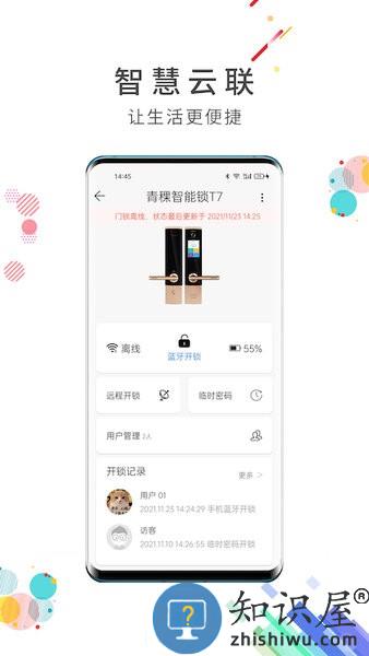 智慧云联安卓版是用来连接家里智能门锁的,让你可以远程来进行访问控制,并且还能查看它们的状态,了解剩余电量和使用时长,更是可以分享给家人进行多人管理。