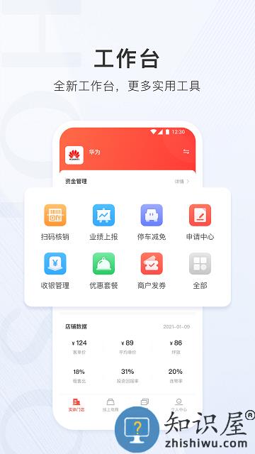 【店铺】实时销售数据统计、当月销售数据统计、修改密码、开歇业设置。