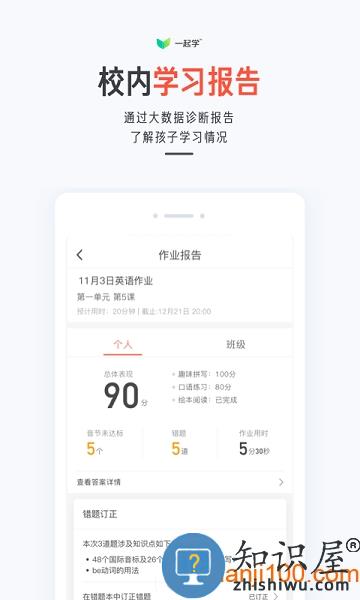 学习报告:校内作业和学习能力测评反馈,随时查看孩子学习动态和作业成绩,了解知识点掌握情况,进步退步随时掌握。