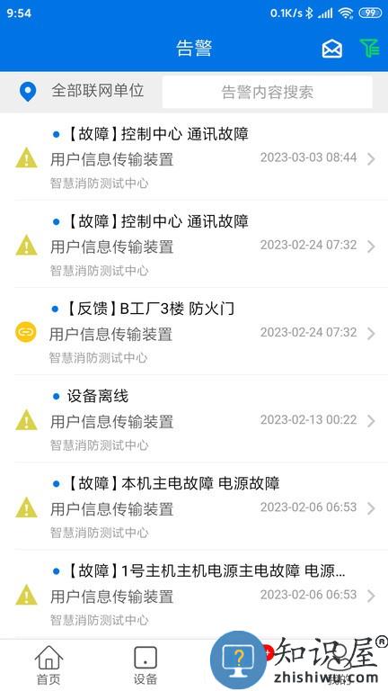 点击设备管理,能够对单位下的所有消防设备进行统一管理