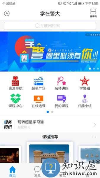 学在警大app最新版是非常好用的校园软件,这里有非常丰富的学习资源,支持在这里查找课程,能够在线选课,支持在线学习和参与培训,可以看直播课程,可以下载各种教学包资源,还能在线读期刊报纸。