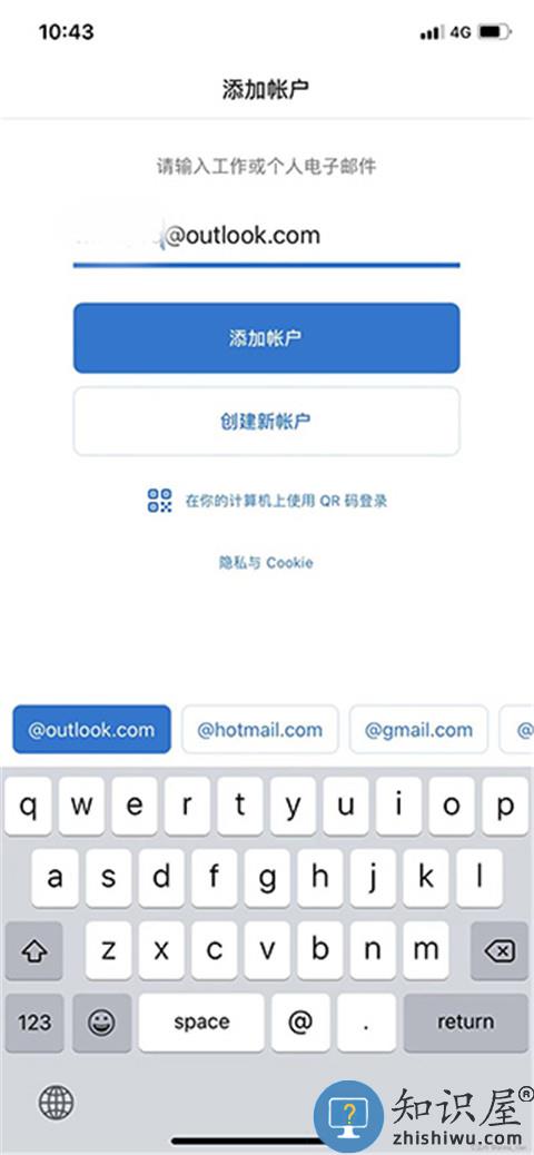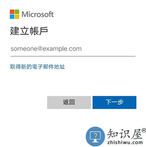 2、在创建用户界面输入新建账户,outlook账户的格式是以英文开头,例如someone@outlook.com。