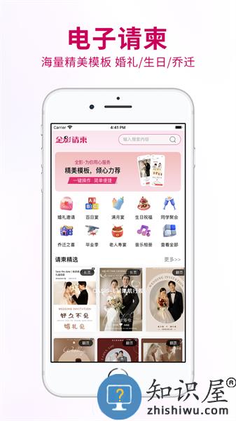 免费微信喜帖、结婚婚礼、百日生日、宝宝满月、电子邀请函、电子请帖、喜帖、同学聚会、生日贺卡、老人寿宴、乔迁商务等电子请柬邀请函等海量APP模板。
