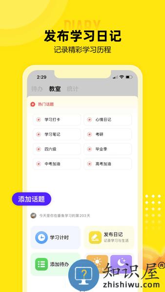 这里有学习待办+番茄计时+学习统计+考试日历+线上自习室+学习日记+学霸笔记+早晚打卡等丰富的学习工具。记录学习历程,分享学习心得,让学习更高效,让自己更优秀!