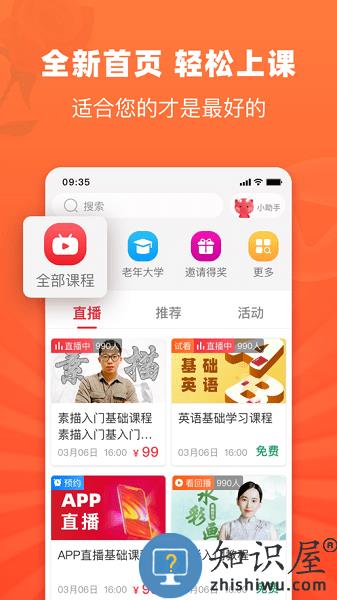 专为老年学员量身打造的在线移动课堂,内含十万集免费课程。