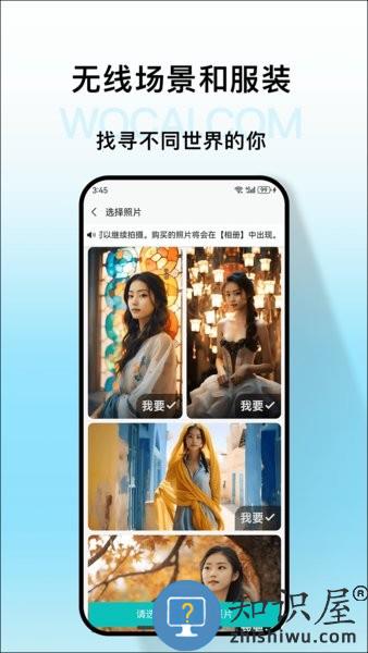 实现让用户足不出户拍摄各种写真照片的目的。用户仅需上传一张照片,即可在30秒内获得一组写真,用户可选择自己喜欢的写真进行购买。