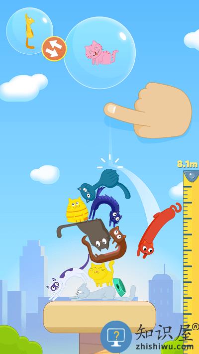 休闲益智类游戏,游戏有着极简的画风,超级多不同的对战模式可以去自由的选择,玩家只需要将一个个小猫慢慢的在下面的台上一一叠起来,只要保持小猫在台上不掉下去,你就赢了。