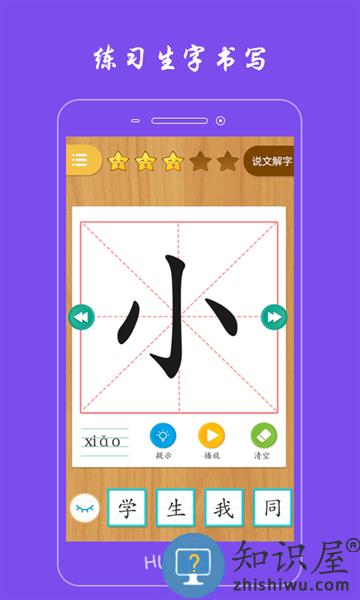 本软件是一款实用的汉字书写学习软件,同步教材,针对教材中的生字,进行书写练习及通过图文并茂的方式了解生字的相关知识。不仅提供了汉字的标准读音、部首、拼音,而且配有相应的词组以及正确的书写笔画顺序,能够令孩子清楚的知道汉字的落笔、笔划的方向及次序等,帮助孩子实现书写规范,实现手脑并用能力的提升。让小朋友们在快乐中轻松的学好汉字。