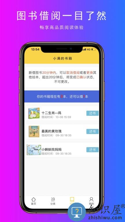 汇集各种绘本,实现绘本的借书、还书功能。让孩子爱上绘本,爱上读书,让自己每天都不一样哟~
