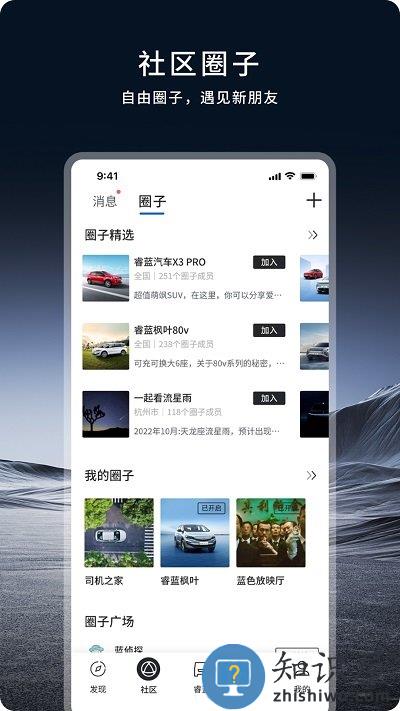 在这里您可以构建专属社交番圈,结交同道朋友,解锁换电汽车知识,分享出行生活趣问,订购睿蓝汽车,远程智能操控,记录换电旅途,唤醒低碳出行。