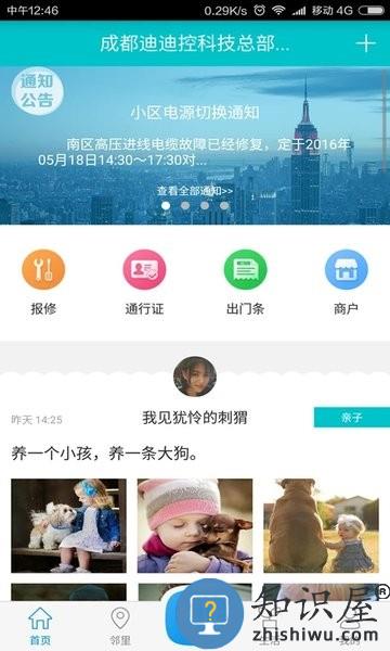 在社区界面分享自己的所见所闻,与邻居们认识,在线沟通,相互了解;