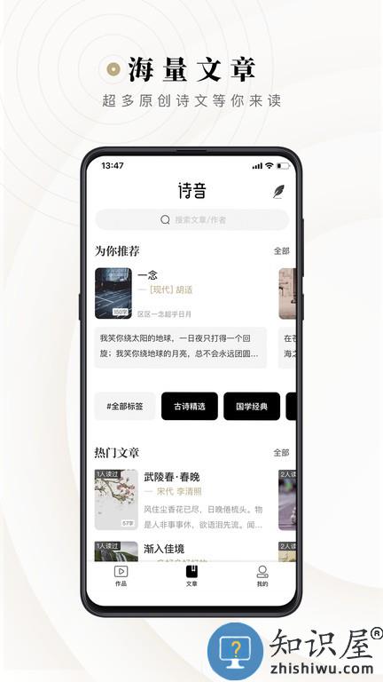 【海量诗词】丰富的诗词库,涵盖中外名家名作;也可以上传创作的原创诗词,成为认证作者.