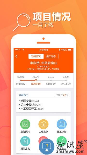 - 可视化移动装修管家,实现随时随地查看工地进展,为您节省时间。