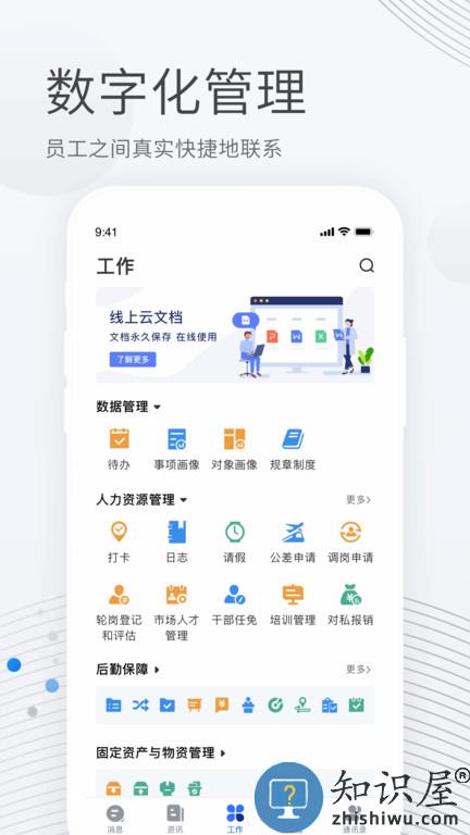 4.完全数字化管理:拥有基本事项、专业事项以及经营管理等功能,帮助员工进行工作计划安排,参加培训学习,查看企业用工需求等,对于员工和管理人员都是工作上的好助手。