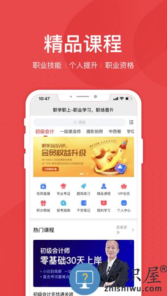 职学职上app内置海量课程等你来免费学习,上前门的在线课程任您挑选,还有专属的职业测评,一键创建简历,可以快速投递各类职位!