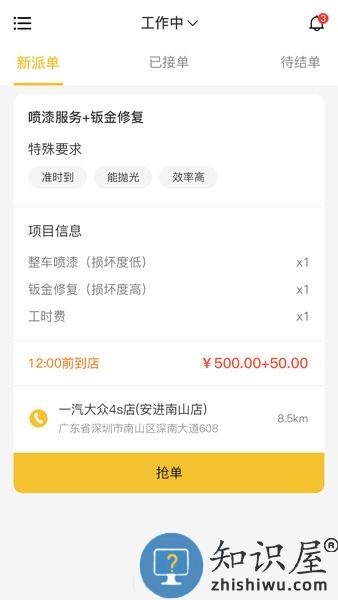 维修店在线集采商品,价格实惠,在需要喷漆工时,可以在线派单,方便、省钱!