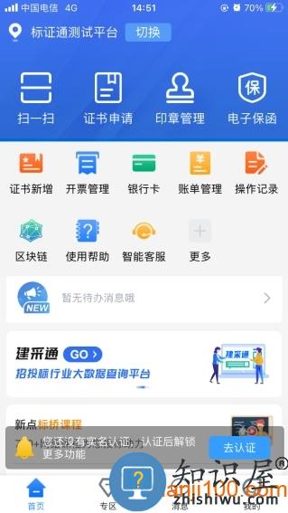 首次登录的账号点击首页底部悬浮窗中的【去认证】按钮,进行实名认证,如下图所示。
