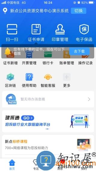 首次申领完证书,并被CA公司审核通过后,用户可通过点击【去下载】按钮,跳转至消息页面,进行证书下载操作,如下图所示。