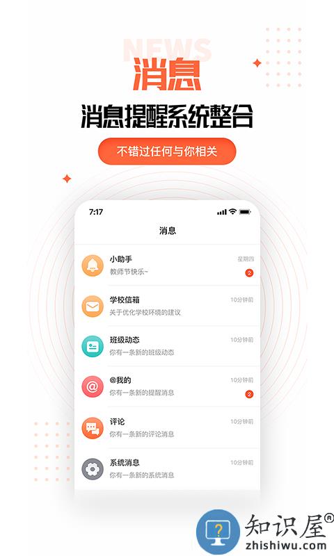 1、整合【消息】模块,系统通知与重要提醒,不再错过!更能实现校长与家长的直接沟通,信息传达不再滞后。