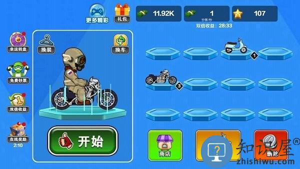 1、一场高难度的比赛马上开始,骑乘你的自行车开始冲刺,避开沿途的障碍。