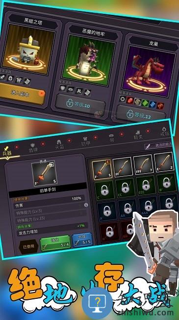 像素人生存大战是一个像素风的动作冒险游戏。比传统的即时挂机游戏更易上手的3d游戏界面,游戏包含多种武器和角色供你自由选择,角色的技能也可以根据战场需要随心所欲的搭配,3D的像素风让游戏拥有更丰富多样的游戏场景,升级通关都可以获得丰富的游戏奖励,是一个可玩性很高的游戏。