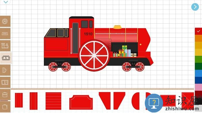 提供了大量的多种配色的火车部件、轮子、贴纸和基础形状的积木块,用户可以快速搭建也可以随意发挥。