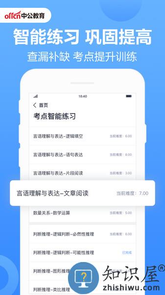 3、在外面工作一年多了,还是想考公务员,朋友推荐下载的。里面有公务员考试行测、公务员考试申论、公务员面试、公务员考试公共基础知识,非常全面,这几天一直在里面做题,还能模拟考试,通过这几天的刷题,模拟考试得成绩越来越好,不用去外面花钱上课了!