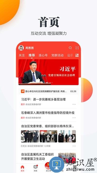 4、拥有多样的首页信息展示内容,这里设置了推荐栏,推荐重要的党建资讯,还提供公式以及党群活动众多信息;