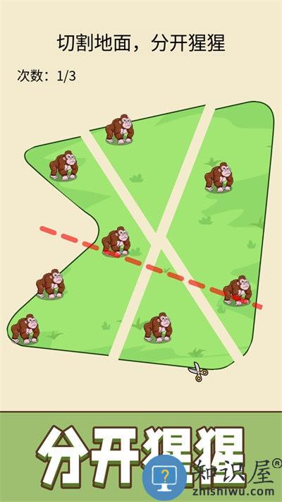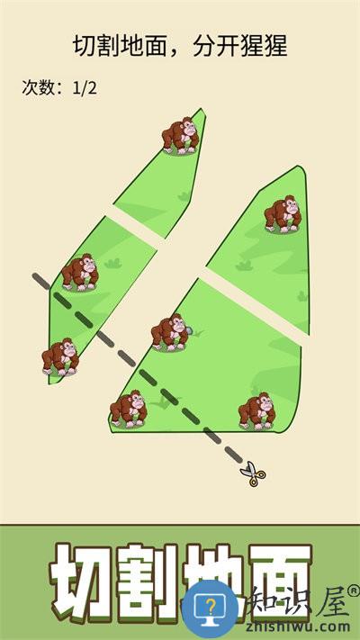 超级划线达人游戏是休闲类的闯关游戏,画面风格十分的小清新,玩家可以看到场景中有很多的猩猩,你需要通过切割地面将这些猩猩分开,有着丰富的关卡等你来体验,喜欢的小伙伴快来下载试试吧。