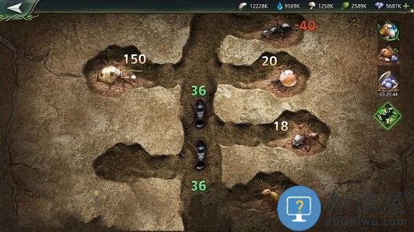 --存储大量的粮食作为你们的后勤保障,通过训练来升级工蚁的战斗能力。