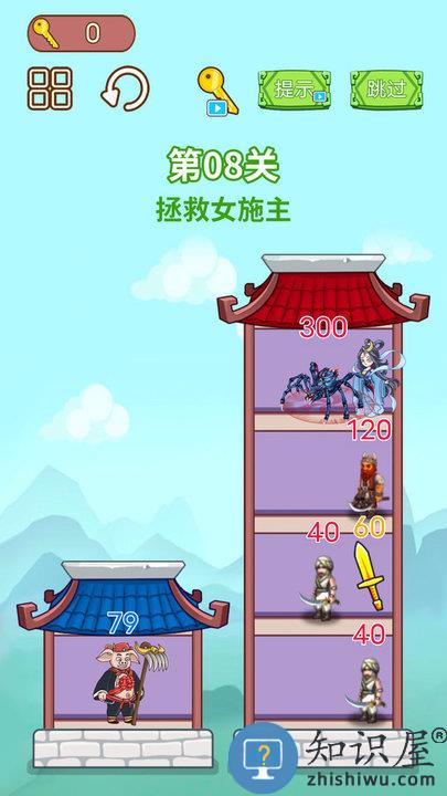 3.开动你的脑筋,移动人物到不同楼层来击败弱小的敌人。