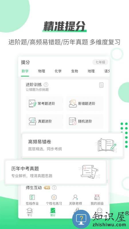 精准提分,进阶题/高频易错题/历年真题,多维度复习,让学生整理一道错题,解决一类错题。手机+电脑双平台智能辅导