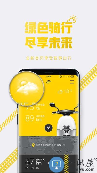 以开启绿色出行新时代为理念,通过移动互联网技术,为电动车车主提供智慧、便捷的骑行体验