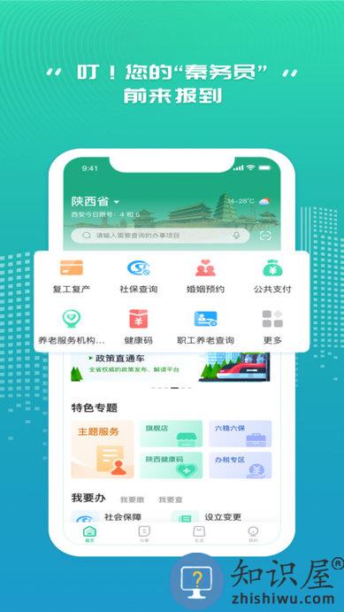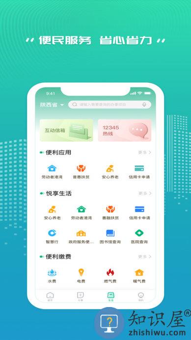 是陕西智慧政务的一张名片,这款软件以"互联网+政务服务"的形式展现,是零距离、全天候、一站式"线上线下融合的政务服务的全新生态.旨在成为人民的勤务员,聚焦企业群众需求为用户提供个性化、主动化、精准化、便利化、智能化服务.