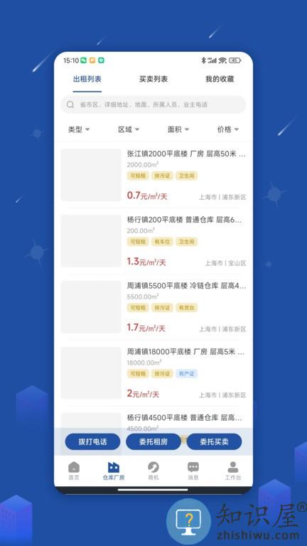 园区获客宝app汇集了丰富的厂房和仓库资源,支持在线找需要的厂房资源,如果你有闲置的厂房或者仓库,也能在线进行买卖和租赁,能够查看详细的价格趋势走向,可以按照区域、面积价格等来进行筛选。
