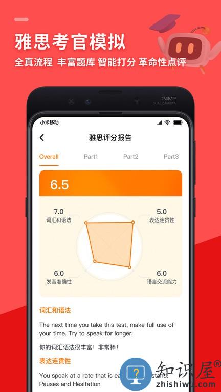 通过ai技术赋能雅思口语模考,实时出分无需再等待。根据你的回答,多维度评分及建议,给你最清晰直观的评分结果。