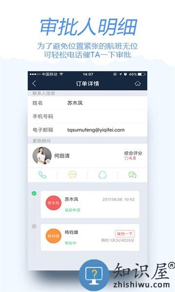 2、多种差旅顾问联系方式,订单详情里面的差旅顾问栏设置电话、短信以及qq和微信多种联系方式;