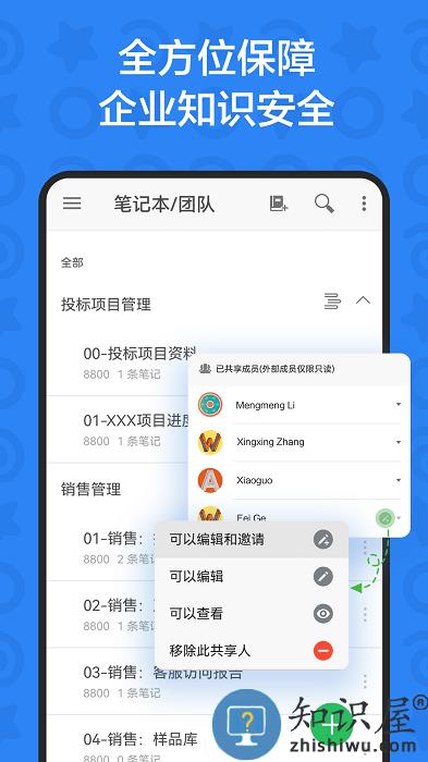 - 内容管理:笔记历史永久保留,误删一键恢复,保护知识资产离职文件永久保留,交接更轻松批量删除、更改标签、共享状态,管理更省心共享关系可查、可追溯、可修改,内部共享、对外共享状态一目了然。
