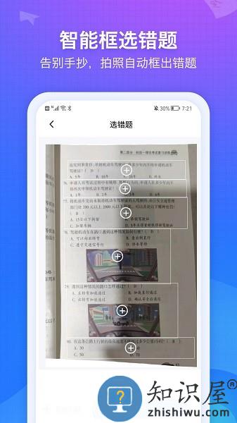 - 拍摄整张卷面,人工智能辅助框选错题,只需要选定自己想要的错题。