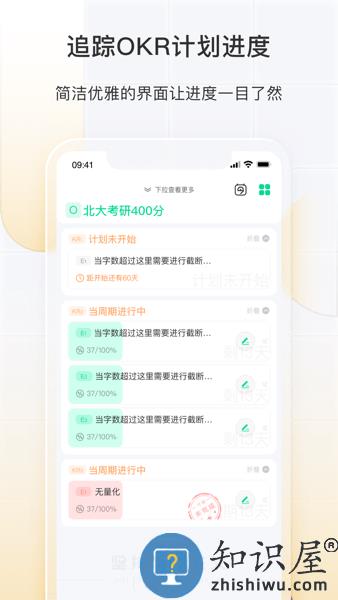 无广告的简洁页面,无需付费即可享有所有功能,通过OKR理念帮助你更好地分解目标、制定计划、高效执行,“坚持长期主义”,让你的成长更清晰可见。