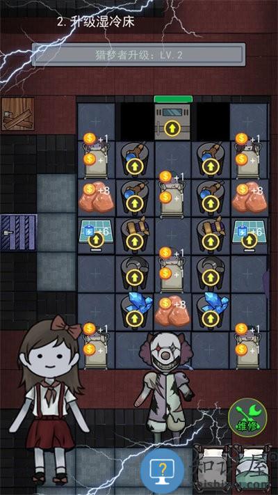 ·通过升级道具抵挡猛鬼的攻击,打败猛鬼,逃出宿舍